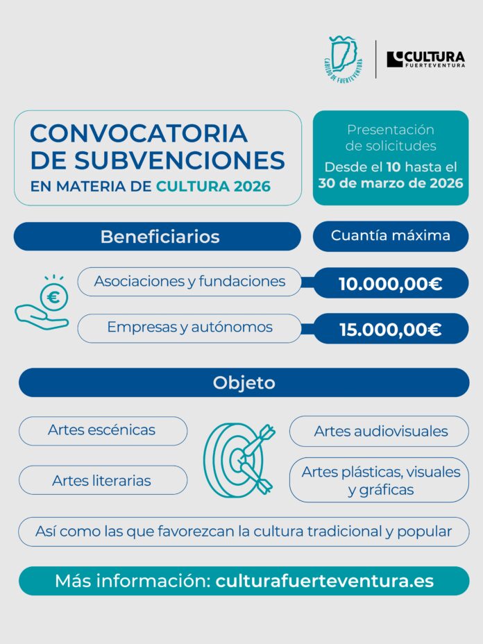 Das Cabildo de Fuerteventura hat die Antragsphase für Kulturprojekte eröffnet. Diese Förderaufrufe richten sich an kulturelle Vereinigungen und Berufsgruppen, die auf der Insel tätig sind. Die Präsidentin Lola García betont die Bedeutung dieser Aufrufe innerhalb des kontinuierlichen Engagements des Inselrats für die Entwicklung der Kultur auf der Insel. Bis zum 30. März können Anträge eingereicht werden. Interessierte finden alle Informationen online auf der offiziellen Webseite des Cabildo. Die Förderaufrufe sind Teil einer größeren Initiative, um die kulturelle Vielfalt und das kreative Schaffen auf Fuerteventura zu unterstützen. Durch diese Maßnahmen soll die kulturelle Infrastruktur gestärkt und die künstlerische Produktion gefördert werden. Der Inselrat hofft, dass viele Kulturschaffende diese Gelegenheit nutzen, um ihre Projekte zu realisieren.