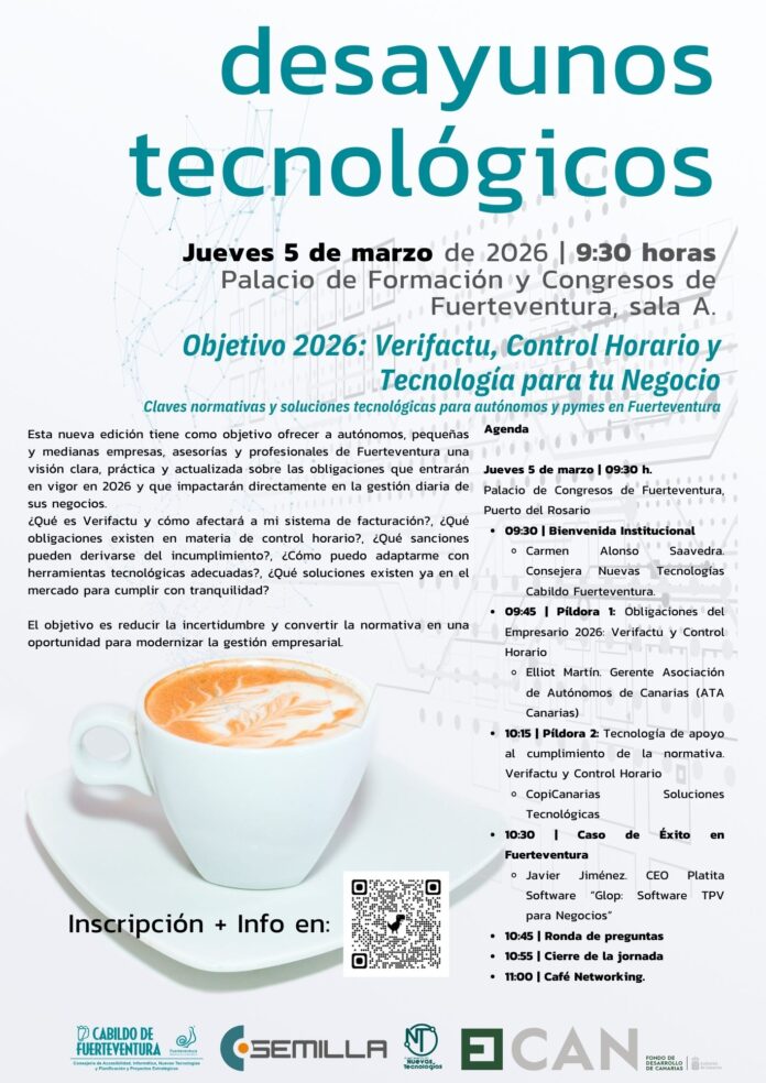 Das Cabildo von Fuerteventura lädt zu einer neuen Ausgabe der Desayunos Tecnológicos ein. Die Veranstaltung bietet Lösungen für Selbstständige und kleine Unternehmen vor Ort.
