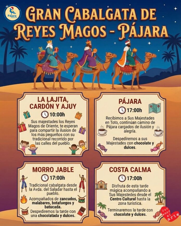Am 5. Januar steht die Gemeinde Pájara ganz im Zeichen der Heiligen Drei Könige. Mit der Gran Cabalgata de Reyes Magos ziehen ihre Majestäten durch mehrere Orte und bringen die traditionelle Dreikönigsfreude zu Groß und Klein.