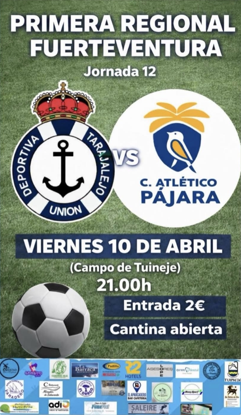 Am 10. April heißes Duell in der PRIMERA REGIONAL FUERTEVENTURA: Deportiva Tarajalejo Union trifft auf C. Atlético Pájara im Campo de Tuineje. Beide Teams haben in dieser Saison eine starke Leistung gezeigt und werden alles daran setzen, die Punkte zu gewinnen. Tickets sind für nur 2€ erhältlich.