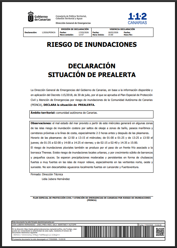 Die Regierung der Kanarischen Inseln hat eine Vorwarnung wegen möglicher Überschwemmungen ausgesprochen. Diese Maßnahme gilt ab Mittwoch um 15:00 Uhr. Grundlage sind aktuelle Daten der staatlichen Wetteragentur sowie weiterer Quellen. Zudem greift der Notfallplan PEINCA für Hochwasserrisiken. Besonders betroffen ist das gesamte Archipel. Behörden rechnen mit einer Verschlechterung der Wetterlage. Deshalb sollen sich Bürger frühzeitig vorbereiten. Gleichzeitig betonen die Verantwortlichen die Bedeutung von Vorsichtsmaßnahmen. Küstenbereiche und tiefer gelegene Regionen stehen im Fokus. Auch städtische Gebiete könnten betroffen sein. Durch die frühzeitige Warnung sollen Schäden reduziert werden. Darüber hinaus dient sie dem Schutz der Bevölkerung. Entsprechend rufen die Behörden zur Aufmerksamkeit auf.